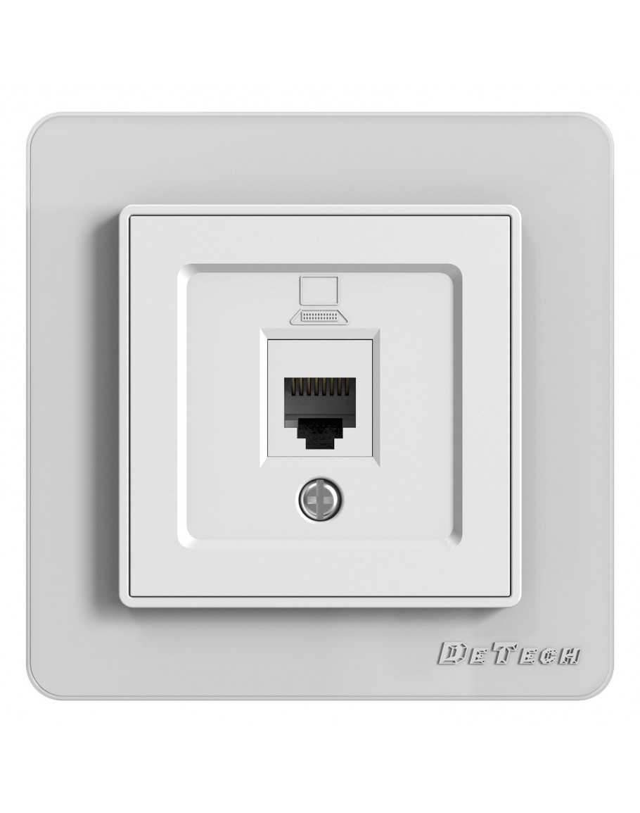 Единична розетка за компютър DeTech DE-6008-61, RJ45, Cat5E, За вграждане, IP20, Бял - 75006