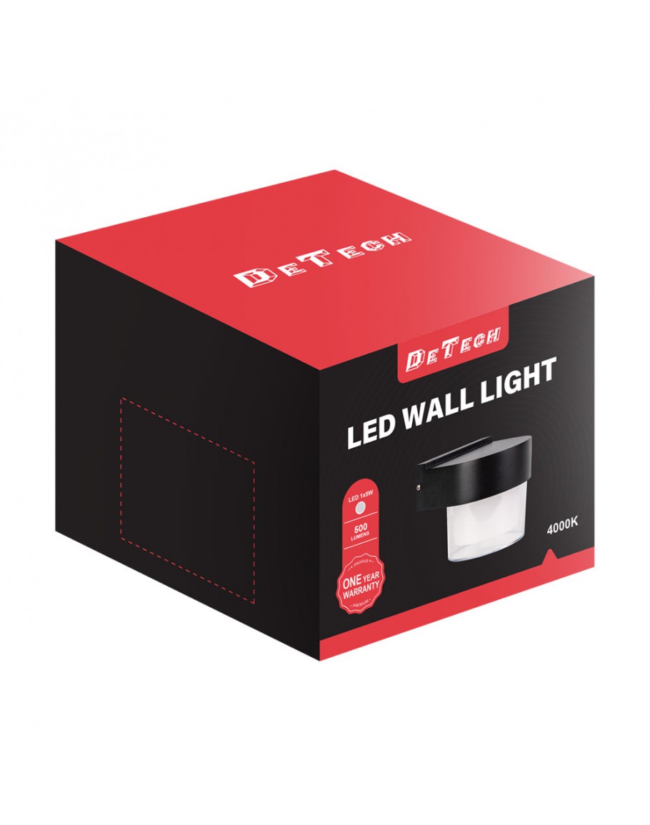 Фасадна лампа аплик DeTech , 1*5W, 4000K, IP44, Черен - 77035