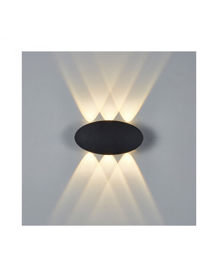 Фасадна лампа аплик DeTech , 6*1W, 4000K, IP44, Овал, Черен - 77032