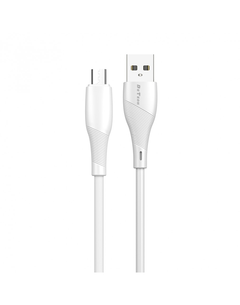 Кабел за данни DeTech DE-44M2, Micro USB, 2.0m, Бял - 40267