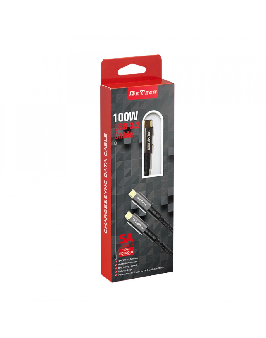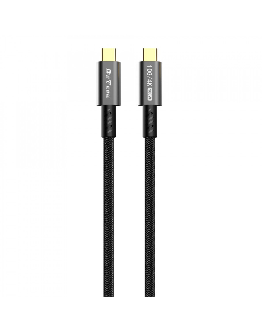 Кабел за данни DeTech DE-C-C, 100W, 4K, 10GB/s, Type-C - Type-C, PD, 1.0m, Черен - 40345