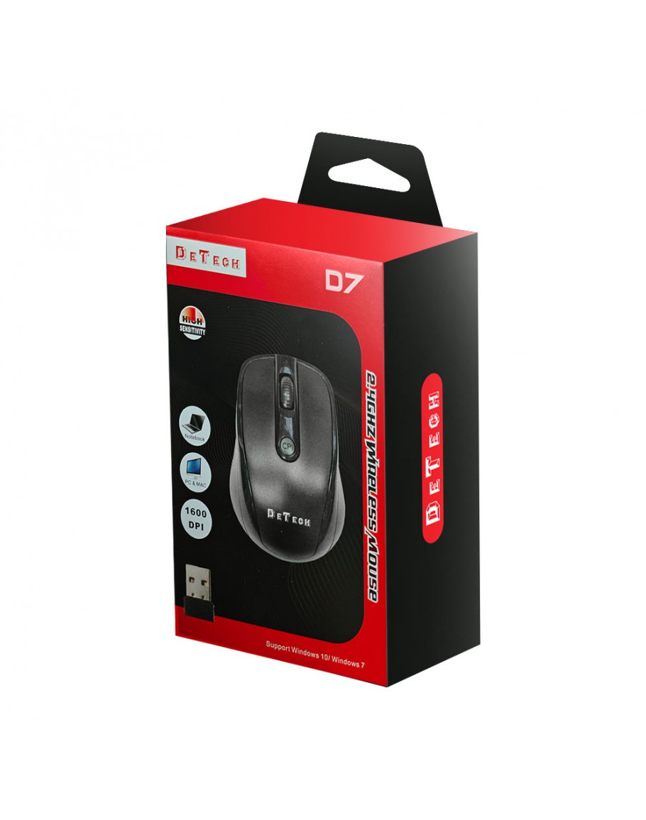 Мишка DeTech D7, Безжична, USB, Черен - 776
