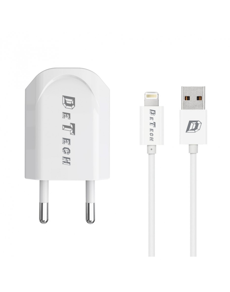 Мрежово зарядно устройство, DeTech, DE-11i, 5V/1A, 220V,1 x USB, С Lightning кабел, 1.0m, Бял - 14116