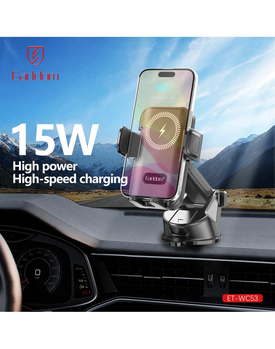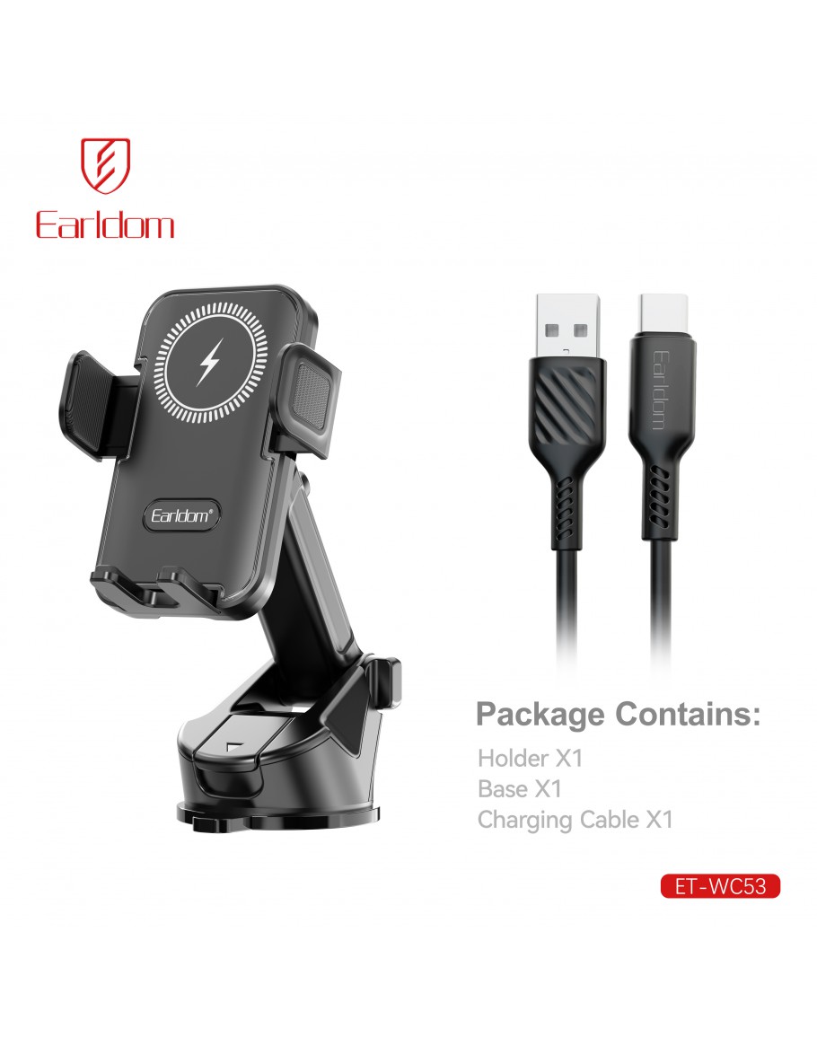 Универсална стойка за телефон, Earldom ET-WC53, Безжично зареждане, Черен - 17907