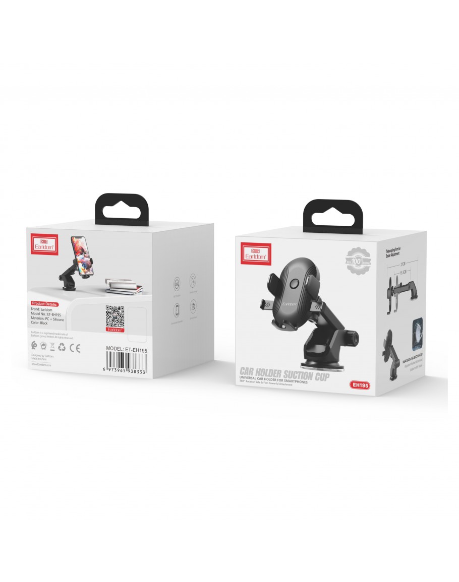 Универсална стойка за телефон Earldom ET-EH195, с вaкуум, Черен - 17780