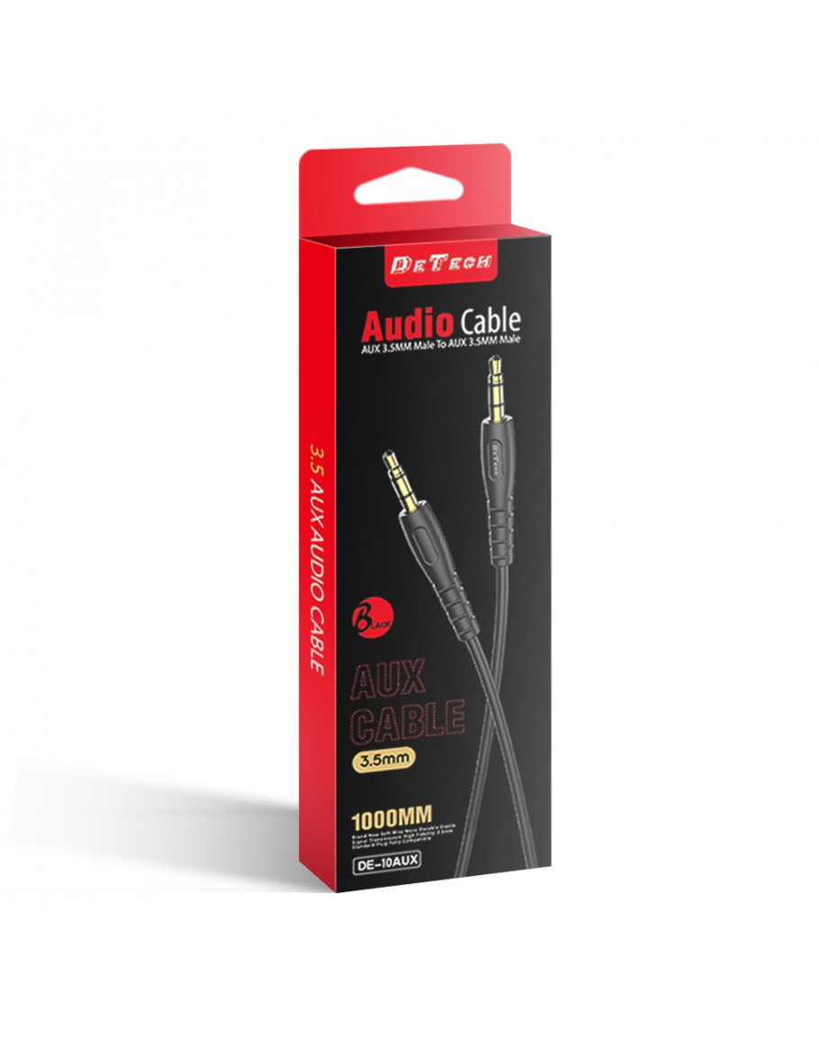 Аудио кабел DeTech DE-10AUX, 3.5mm жак, М/М, 1.0м, Черен - 40276