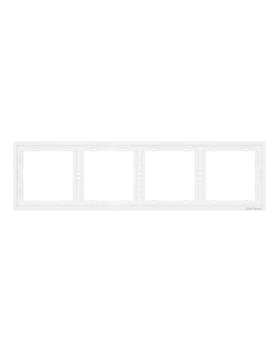 Бяла хоризонтална рамка с висококачествено матово покритие. За комбиниран монтаж на 4 електрически модула от серията DE-9227 на DeTech.