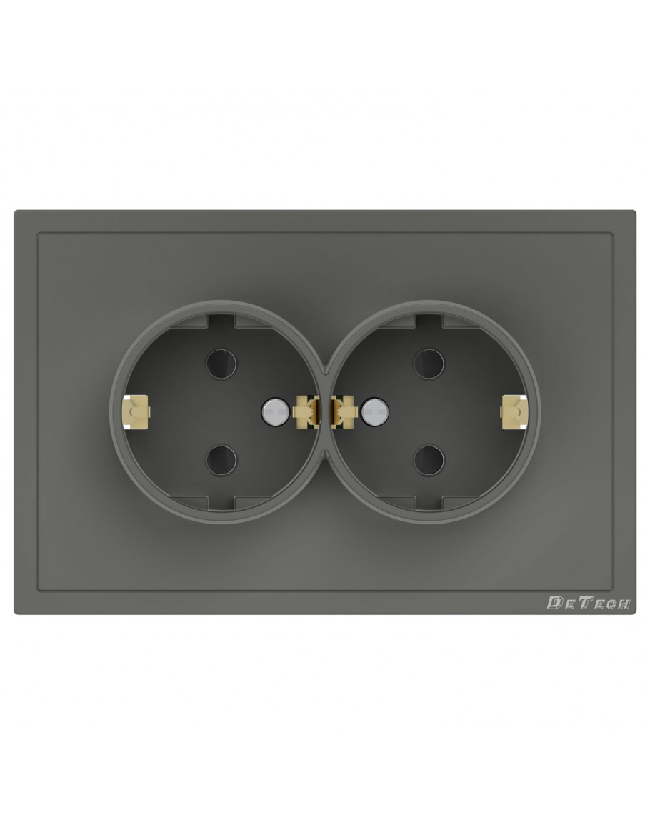 Двоен електрически контакт DeTech DE-9227-52, С рамка, Мат, Шуко, 16А, 250V, За вграждане, IP20, Сив - 75140