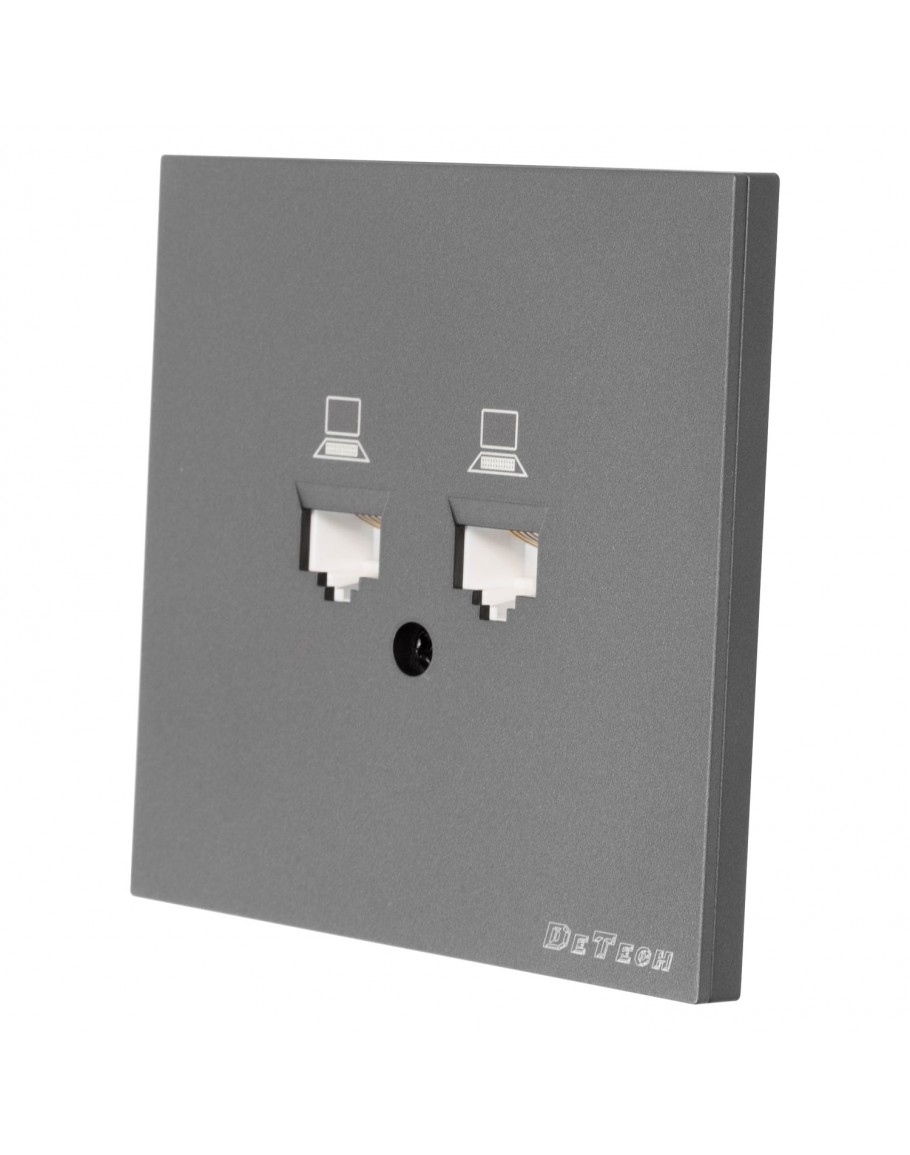 Двойна розетка за компютър DeTech DE-9225-61, RJ45, Cat5E, Slim, Мат, За вграждане, IP20, Сив - 75103