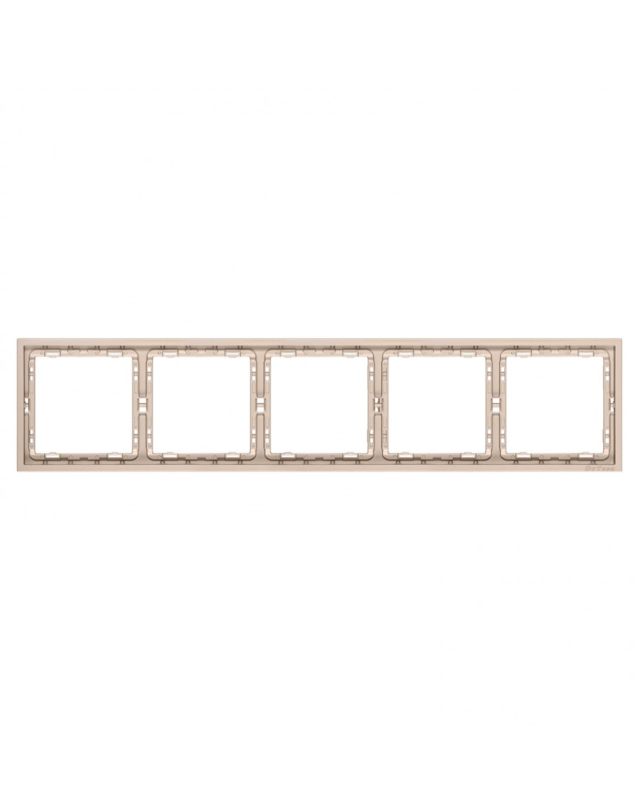 Хоризонтална рамка в златист цвят и висококачествено матово покритие. За комбиниран монтаж на пет електрически модула от серията DE-9227 на DeTech.