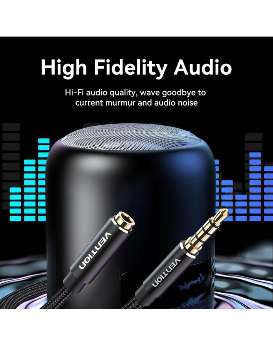 Vention Аудио Кабел Cotton Braided TRRS 3.5mm Male to 3.5mm F - 0.5m - Gold plated, Aluminum alloy - BHCBD