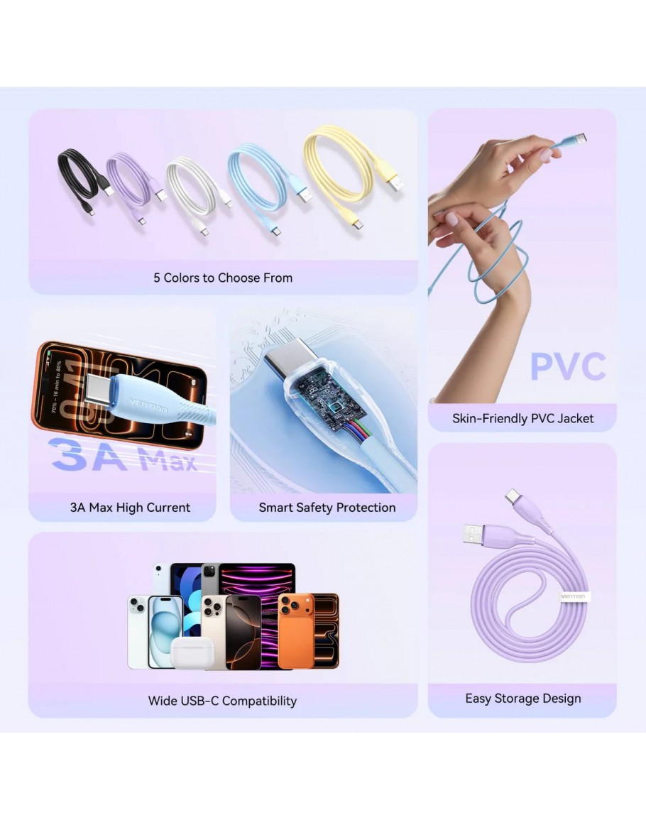 Vention Кабел USB 2.0 A Male to C Male 3A 0.25M Black - CTWBC