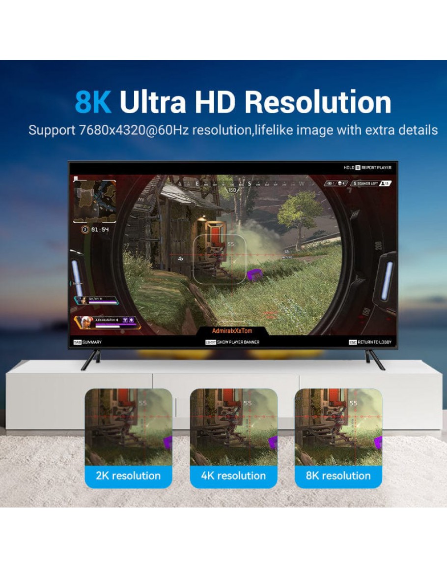 МАКСИМАЛНА РЕЗОЛЮЦИЯ 8K@ 60Hz , 4K 2160p @ 144Hz