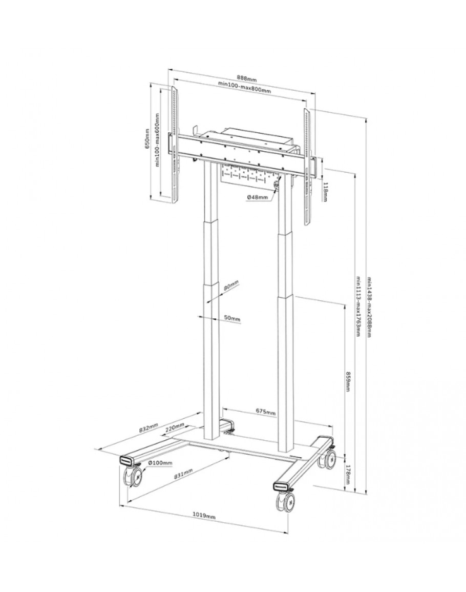 Други  Mobile floor stand; The trolley features four solid 10 cm double locking caster wheels that allow you to move and use the floor stand wherever you like. A practical cable management bracket at the back of the trolley ensure easy and safe relocation