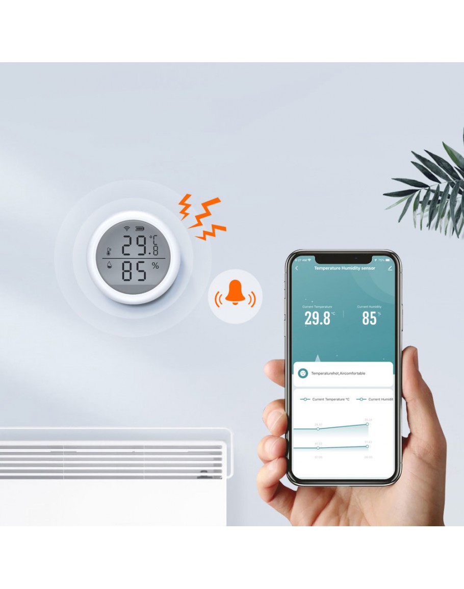 Възможност за известяване на смартфон при достигане на зададени от Вас стойности за температура и влажност.