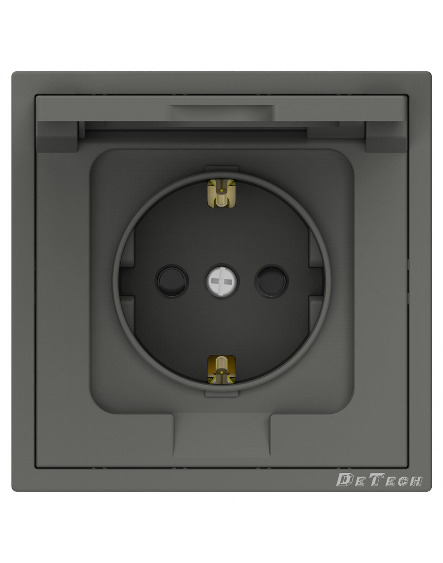 Единичен влагозащитен контакт DeTech DE-9227-45, Шуко, Мат, 16А, 250V, За вграждане, IP40, Сив - 75139