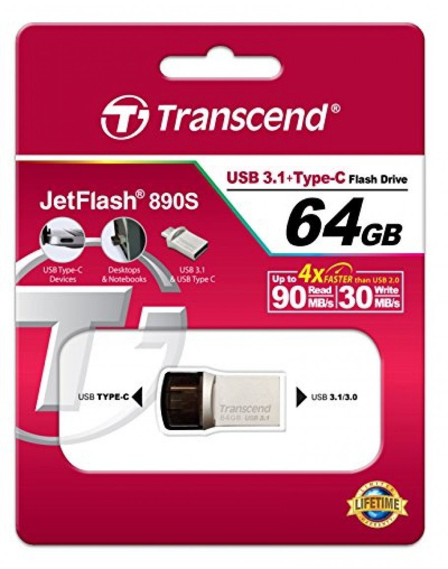 Transcend 64GB JETFLASH 890S, USB 3.1 Type C, Silv