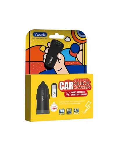 Зарядно устройство за кола Yookie PC1, 5V/2.4A, 12/24V, С Lightning кабел, 2 x USB, Различни цветове - 40135