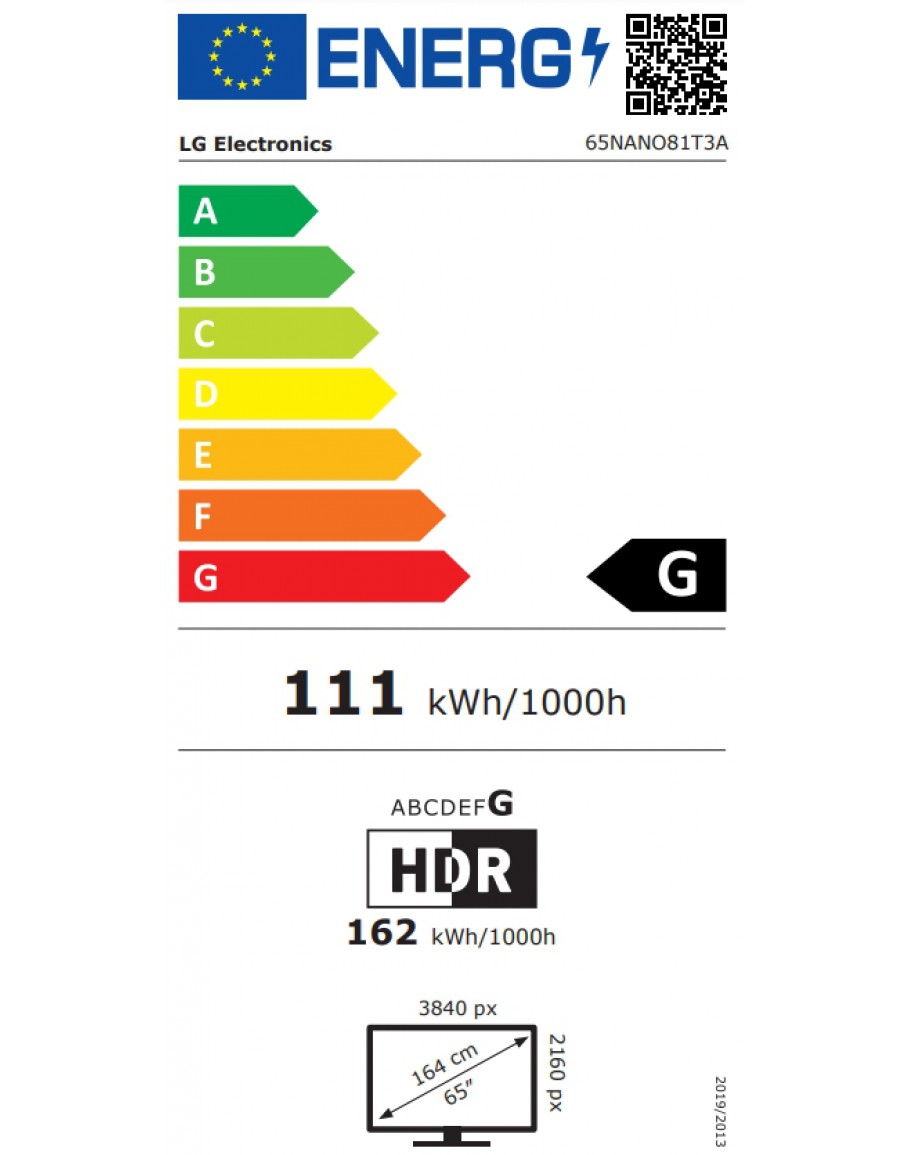 LG 65NANO81T3A, 65 4K HDR Smart Nano Cell TV, 3840