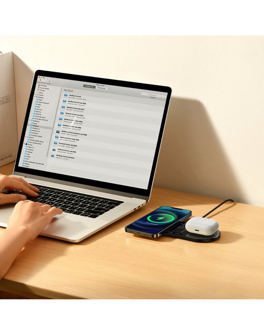 Безжичното зарядно устройство Baseus Digital LED Display с Qi технология ви позволява да подновите енергията на две устройства едновременно.