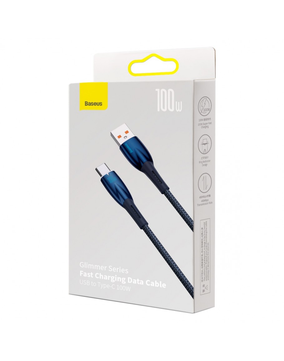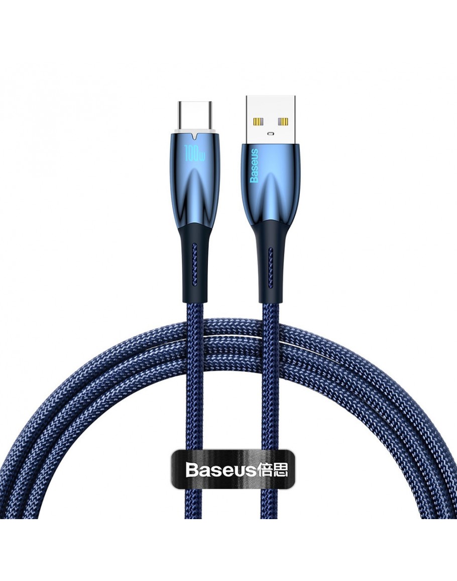 Кабел за данни Baseus Glimmer, Type-C, 100W, 1.0m, Син - 40481