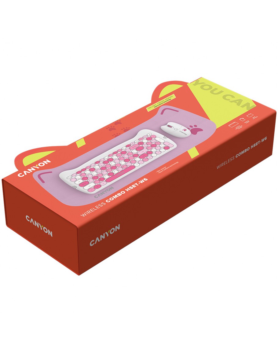 Търговско име  CANYON HSET-W6 Keyboard+Mouse Kitty Edition AAA+РђРђ Wireless Pink