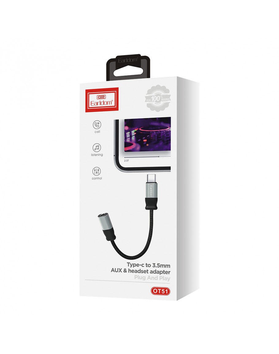Преходник Earldom ET-OT51, Type-C към 3.5mm F, 0.15m, Черен - 40214