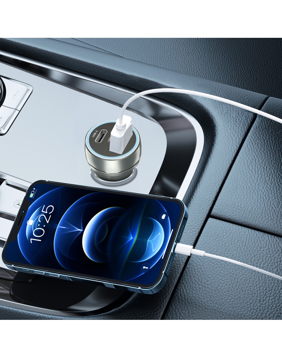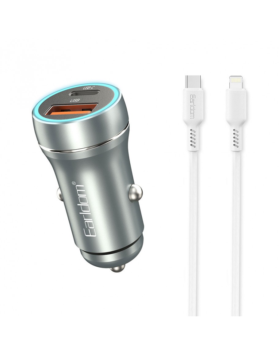 Зарядно устройство за кола Earldom ES-CC29, 30W, USB QC3.0, PD, С Lightning - PD кабел, Сребрист - 40352