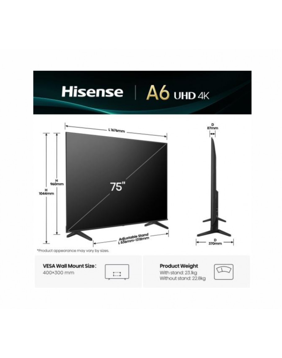 Hisense 75 A6Q, 4K Ultra HD 3840x2160, DLED, DFA,