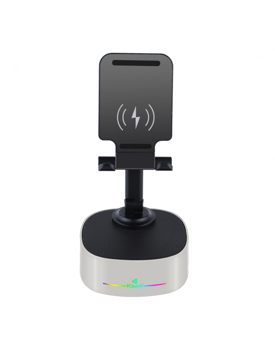 Тонколона със стойка за телефон Kisonli M5, Bluetooth, Безжично зареждане, FM, AUX, RGB, Различни цветове - 22275