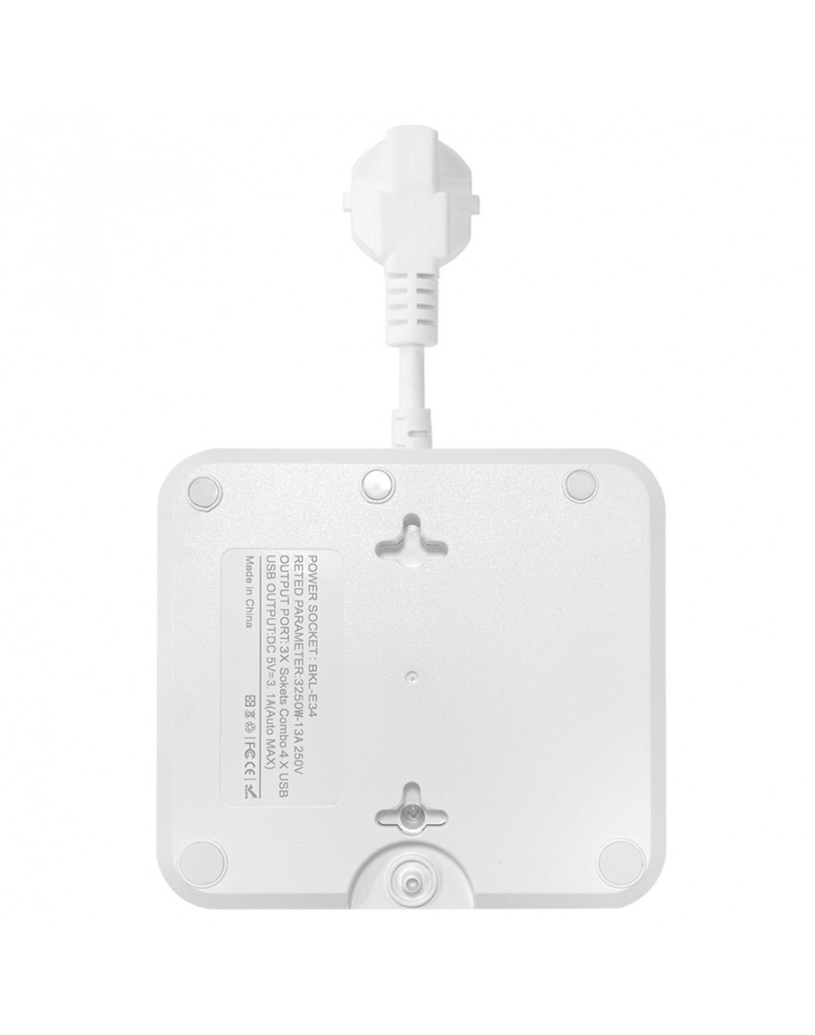 Удължител No brand, 3 гнезда, 250V, 10A, Кабел, 1.8м, 2 x USB-F, 2 x USB-C, С ключ, Бял