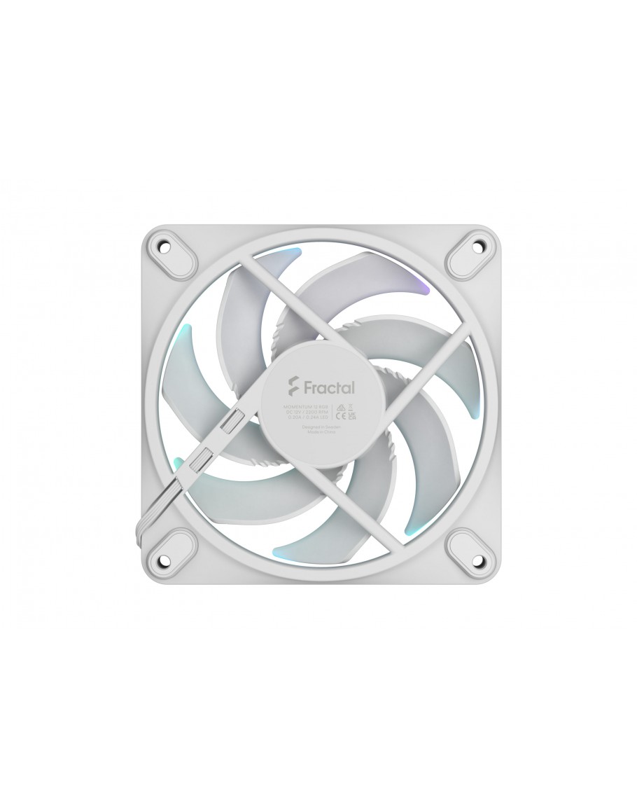 Fan Information  Size: 120 mm;Screw hole pattern: 120 mm;LED Type: ARGB Gen 2 (16 LEDs);Bearing: FDB (Fluid Dynamic Bearing);Number of blades: 7;Rotational speed: 350 (±150) – 2200 rpm (± 10%);Zero-RPM capability: Yes (0%-10% PWM);Noise level: 28,03 dB(A);Airflow (CFM): 62,44;Airflow (m3/h): 106,2;Static pressure: 2,42 mm H2O;Fan input power: 2,4 W;Fan max input current: 0,2A;Fan input voltage: 12V;Fan starting voltage: 7 V;LED max input current: 0,24 A;LED input voltage: 5V;MTBF: >90 000 h;Unit weight: 192g;Cable length: 135 mm daisy chain + 500mm extension cable;Cable type: Fractal Connect