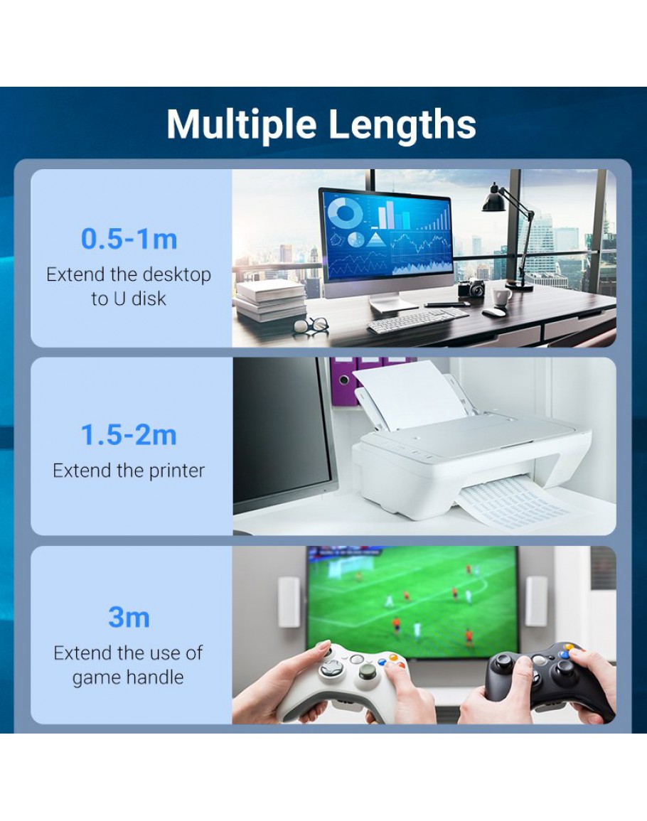 Vention Кабел USB 3.0 Extension AM / AF - 1.5M Black - CBHBG