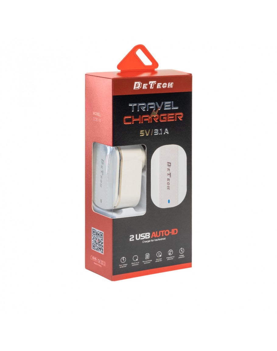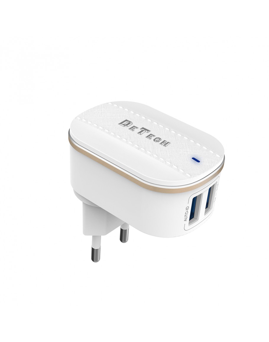 Мрежово зарядно устройство DeTech, DE-15, 5V/3.1A 220V, 2 x USB, Бял - 40095
