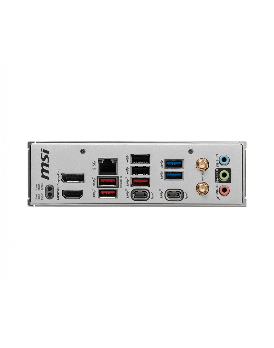 | I/O | DisplayPort;2.5G LAN;USB 2.0;USB 5Gbps (Type-A);Wi-Fi / Bluetooth;Audio connectors;Flash BIOS Button;Clear CMOS Button;HDMI™;USB 10Gbps (Type-A);USB 10Gbps (Type-C);USB 20Gbps (Type-C) | |