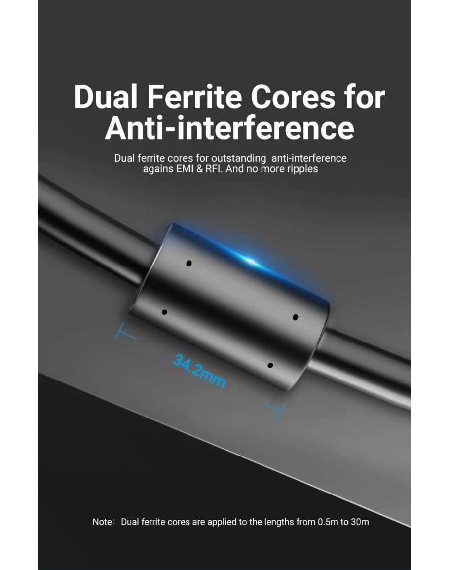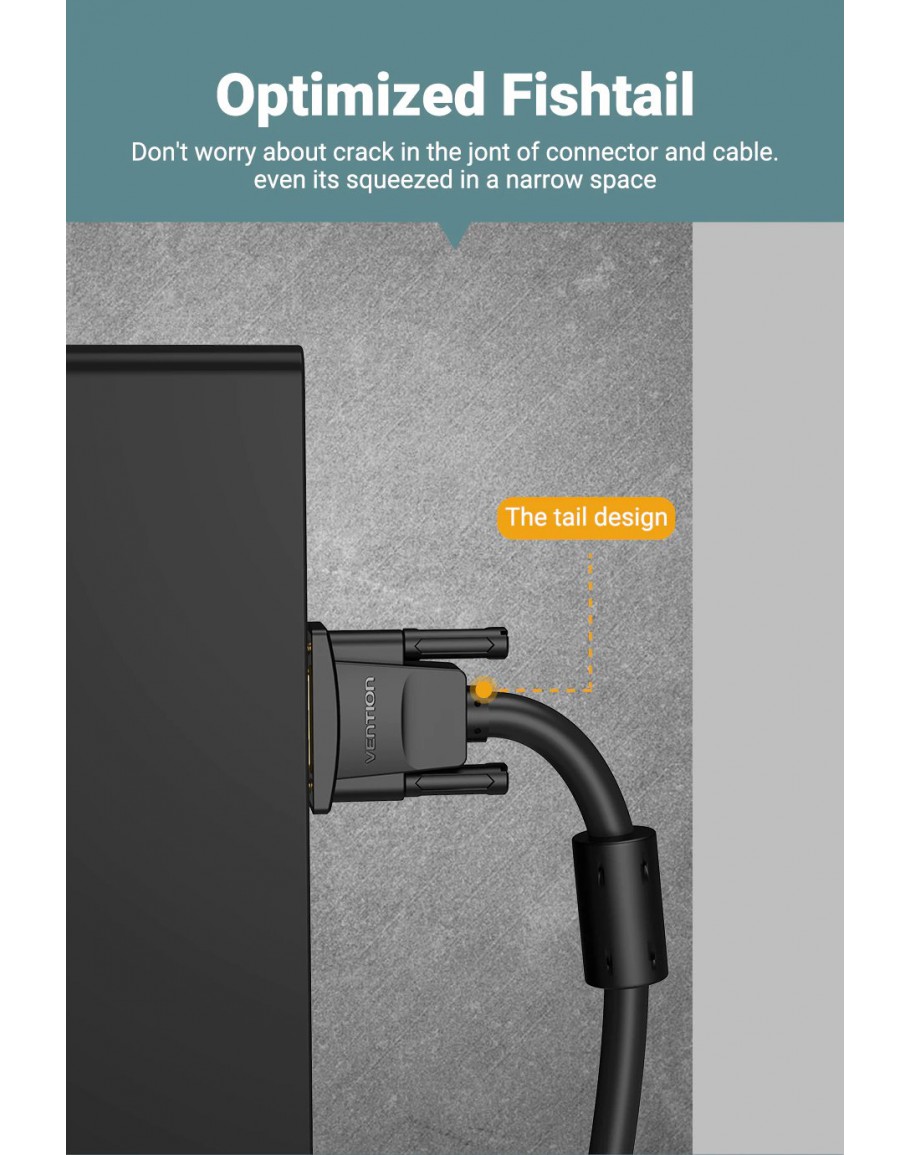 Vention Кабел за монитор Cable VGA HD15 M / M 2.0m Gold Plated, 2 Ferrites - DAEBH
