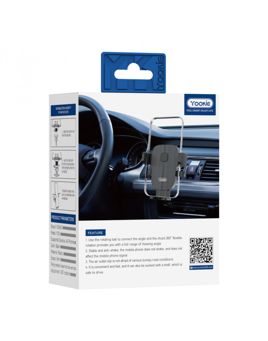 Универсална стойка за телефон Yookie YC10, За кола, Черен - 17726