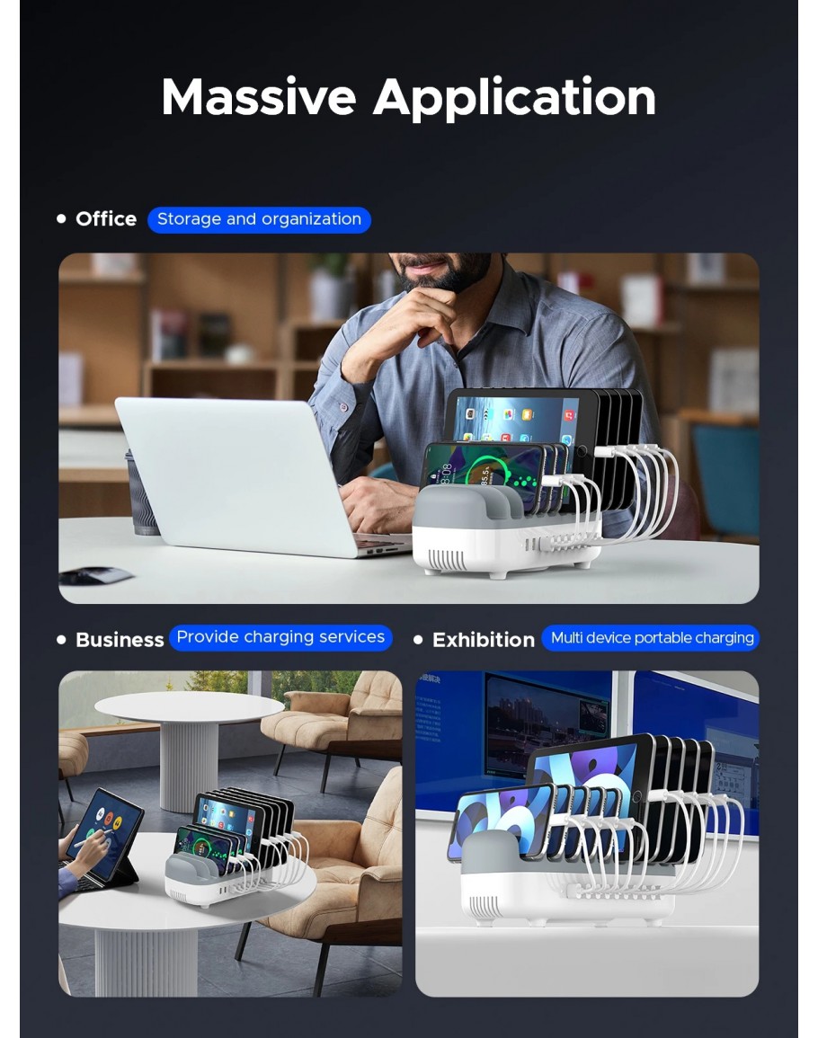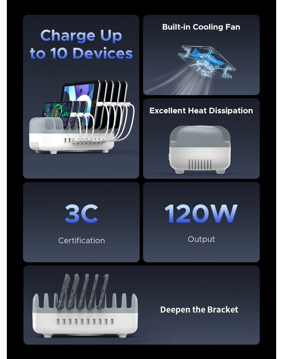 Orico зарядна станция за мобилни устройства Charger Station 220V - 10 x USB 120W white - DUK-10P-EU-WH